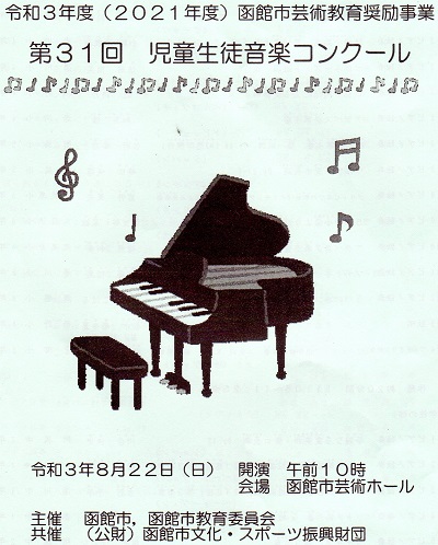 第31回 児童生徒音楽コンクール が函館市芸術ホールで行われました。