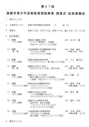 第27回 函館市青少年芸術教育奨励事業 授賞式・記念演奏会