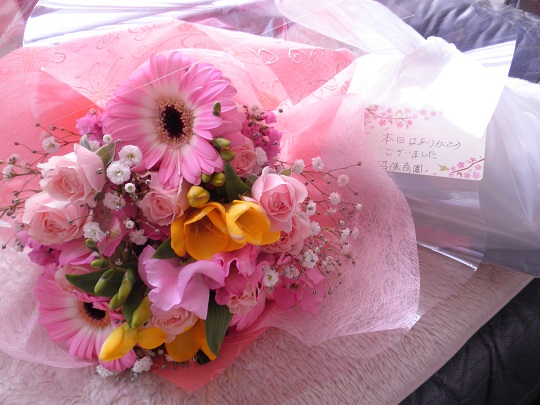 頑張ってもらいたいと思います! 心のこもったメッセージと素敵なお花をありがとう