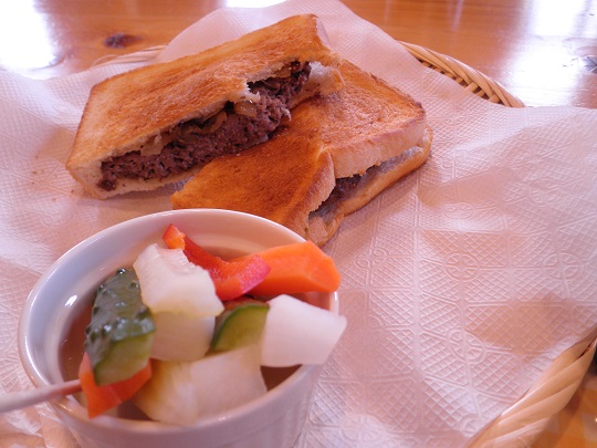 冬期間限定 プレミアム赤身肉山川牛100%の「あらびきステーキサンド」を頂きました