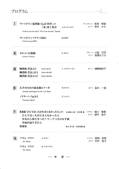 全4組(ソプラノ、ピアノ、バリトン、ソプラノ&メゾソプラノ)の演奏予定です。